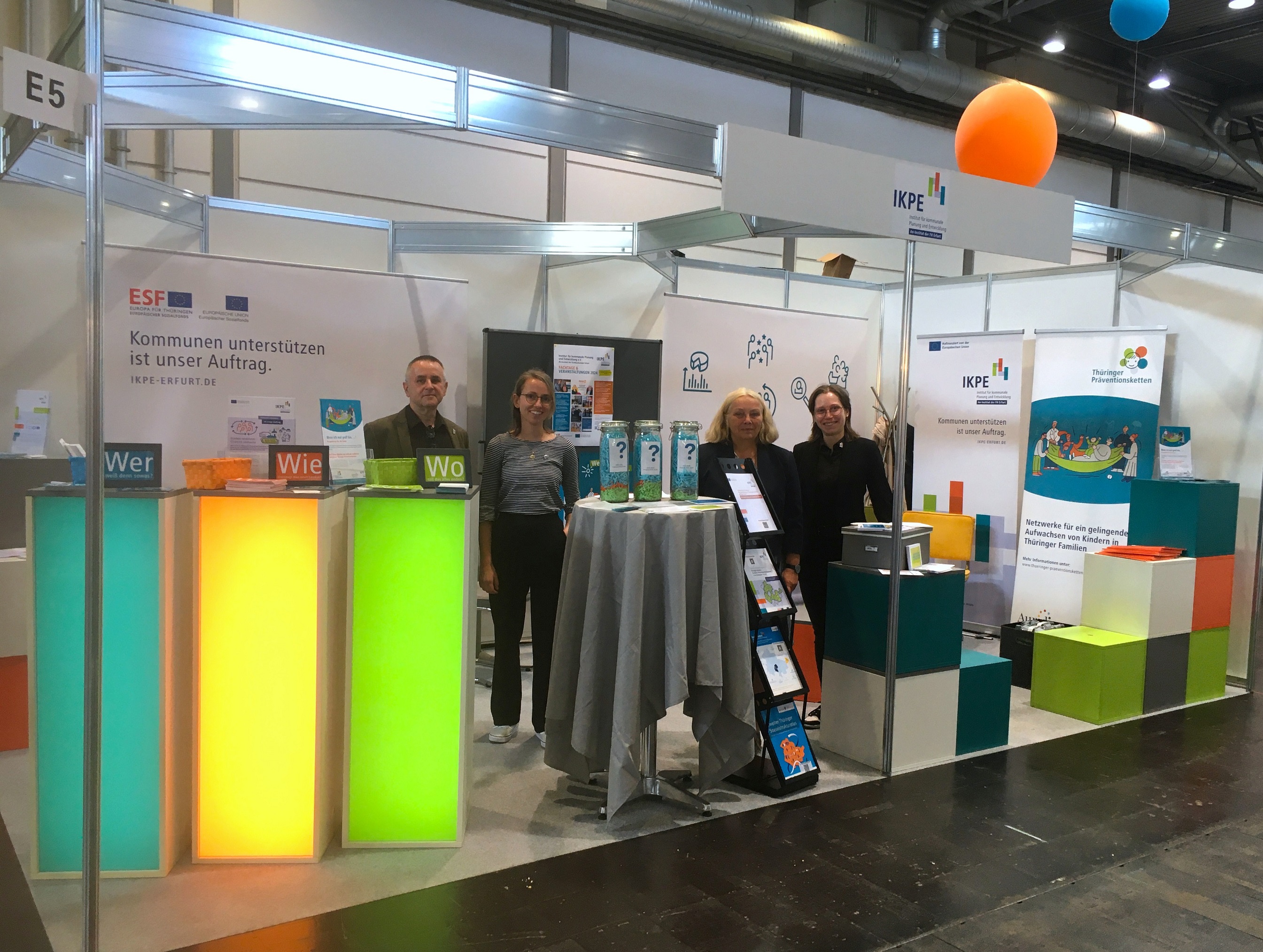 Buntes Treiben, angeregte Gespräche und konstruktiver Austausch: Wir waren mitten im 18. Deutschen Kinder- und Jugendhilfetag, der alleine schon aufgrund seiner Vielfalt an Fachforen und der Anzahl an Messeständen beeindruckt. Am Fachstand des IKPE luden Dr. Heike Schaarschmidt, Prof. Dr. Jörg Fischer und Julia Bäring die Thüringer Ministerin Frau Schenk zu einem Talk über Präventionsketten ein. Sofort entwickelte sich eine spannende Diskussion über Wege und Perspektiven, wie in Thüringen kommunale Spitzen stärker eingebunden werden können und das Programm landesweit sichtbarer wird. Ziel ist es, die Thüringer Präventionsketten fortzusetzen und flächendeckend zu etablieren. Es wurde zusammen diskutiert, was es dafür braucht und welche strukturellen Themen relevant sind.