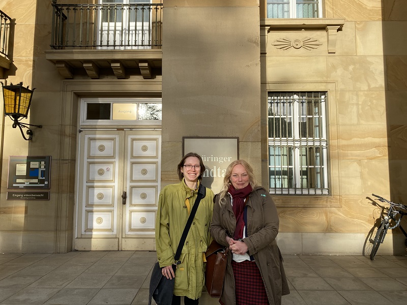 Julia Bäring (links) und Dr. Heike Schaarschmidt vor dem Thüringer Landtag