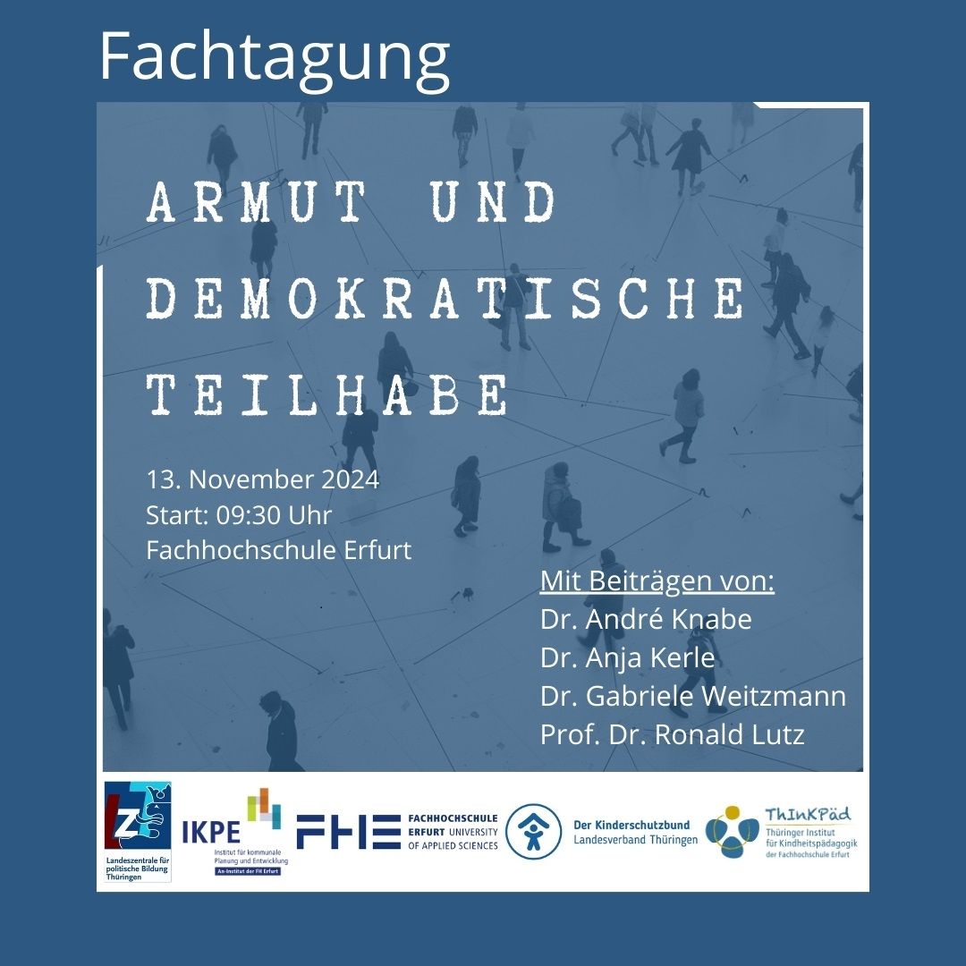Der Fachtag steht in der inhaltlichen Kontinuität mehrerer Tagungen, die sich mit Armut von Kindern, Jugendlichen und Familien befasst haben und ist Ausdruck eines langfristigen gemeinsamen Engagements der Veranstalter für die Rechte von Kindern und eine moderne Kinderpolitik. Es ist dadurch gelungen, in Thüringen ein unabhängiges kinderpolitisches Fachforum zu etablieren, das die Fragen der Kinder- und Familienarmut in einem breiten gesellschaftlichen Kontext in regelmäßiger Form thematisiert. Veranstalter ist die Fachhochschule Erfurt in Kooperation mit dem Thüringer Institut für Kindheitspädagogik (ThInKPäd) und dem Institut für kommunale Planung und Entwicklung, der Landeszentrale für politische Bildung Thüringen sowie dem Deutschen Kinderschutzbund LV Thüringen.